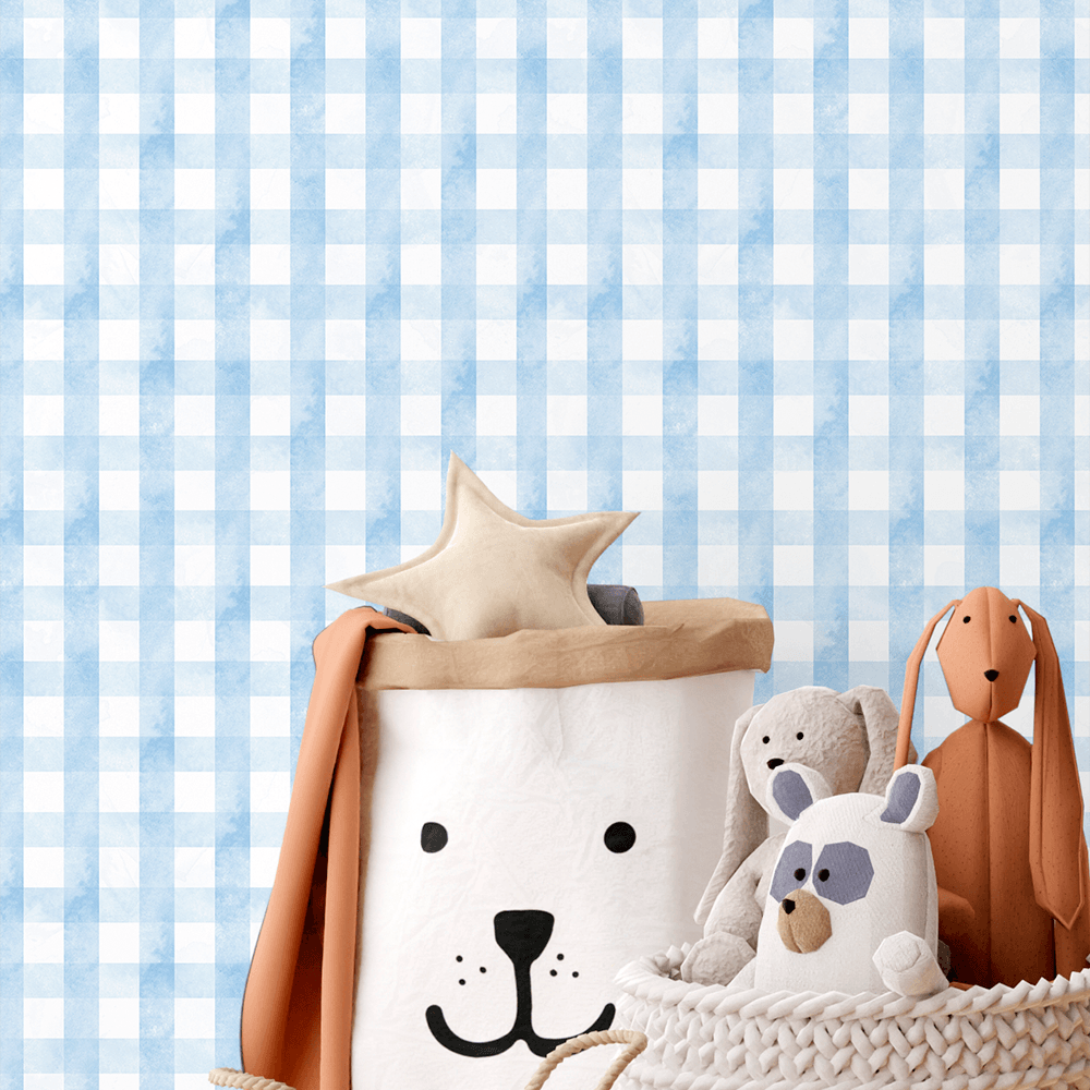 Papel de Parede Xadrez Azul Adesivo Infantil